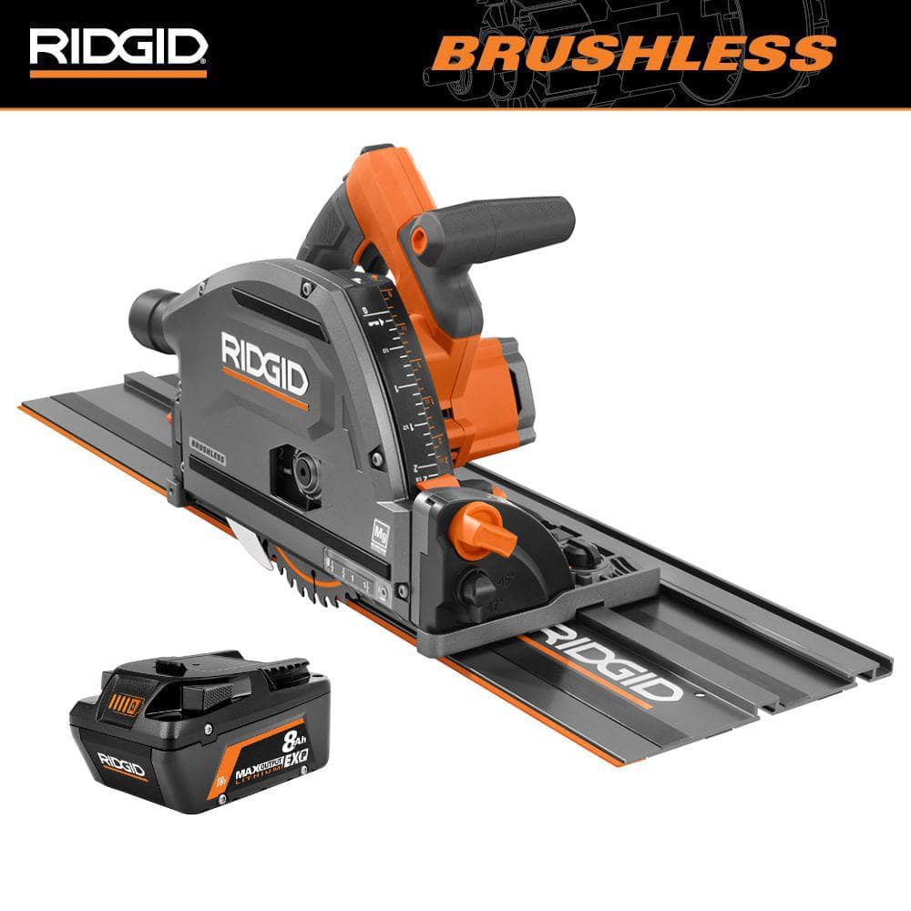 RIDGID 18V Brushless Cordless 6-1/2 in. Track Saw with 8.0 Ah MAX Output EXP Lithium-Ion Battery
