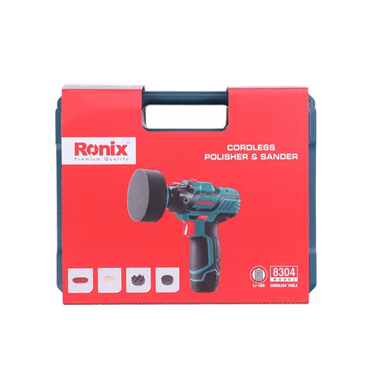 Unleash power and flexibility with the Ronix 8304 Cordless Polisher. Designed for professionals, this 12V mini portable tool boasts a robust motor with variable speed settings, perfect for compounding, waxing, and polishing. The ergonomic design includes a soft-grip handle and complete protective features, ensuring a smooth and safe polishing experience.