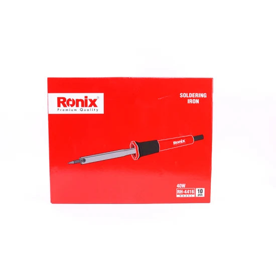The Ronix RH-4416 40W Soldering Iron is a robust tool engineered for precision in electronic soldering tasks, ideal for both professional and DIY applications. Featuring an efficient ceramic heater, it ensures quick heat-up, allowing for seamless workflow with enhanced stability and accuracy. Its ergonomic design and durable construction make it a reliable, high-performance tool in any electrical or electronic toolkit.