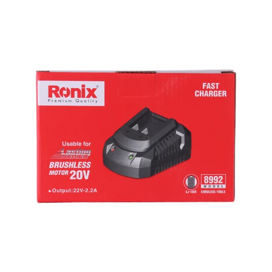 The Ronix Model 8992 22V Li-ion Battery Charger delivers fast and reliable power for all Ronix Lasting Series cordless tools, enhancing your productivity and reducing downtime. With its compact, lightweight design, this charger is built for efficiency and longevity, ensuring consistent performance on the job site.