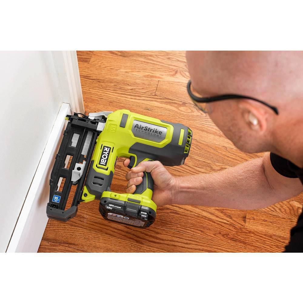 RYOBI ONE+ 18V Cordless 16-Gauge Cordless Straight Finish Nailer and 2.0 Ah Compact Battery Starter Kit