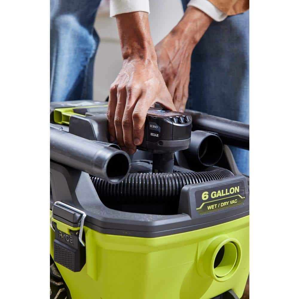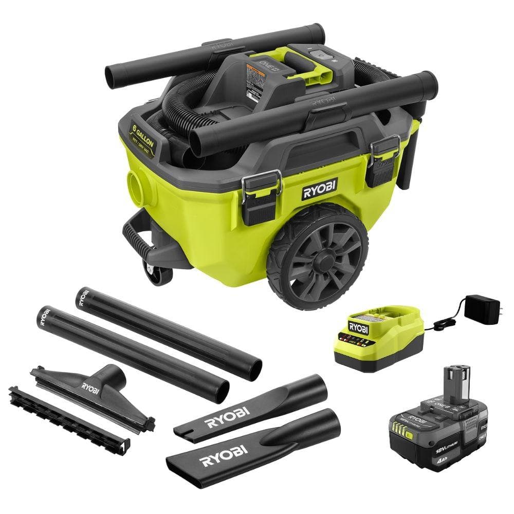 RYOBI ONE+ 18V Cordless 6 Gal. Wet Dry Vacuum Kit w/ 4.0 Ah Battery, 18V Charger, and 1-7/8 in. 6-Piece Wet/Dry Accessory Kit