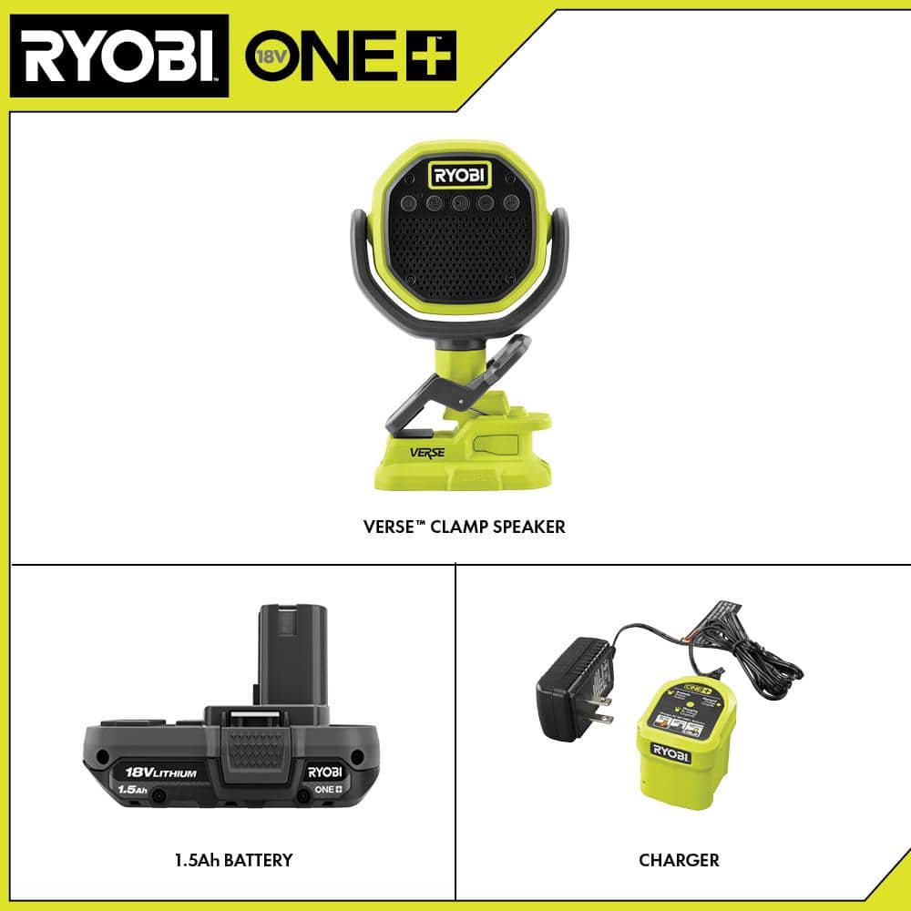 RYOBI ONE+ 18V Cordless VERSE Clamp Speaker (2-Pack) Kit with 1.5 Ah Battery and Charger
