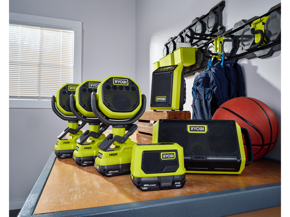 Unleash premium sounds across your job site with the RYOBI ONE+ VERSE Clamp Speaker 2-Pack today!