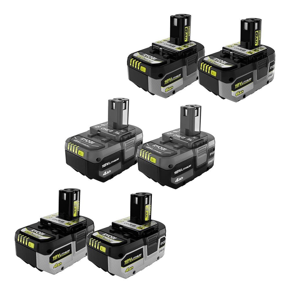 RYOBI ONE+ 18V HIGH PERFORMANCE Lithium-Ion (2) 4.0 Ah and (2) 6.0 Ah Batteries with (2) 4.0 Ah Lithium-Ion Batteries
