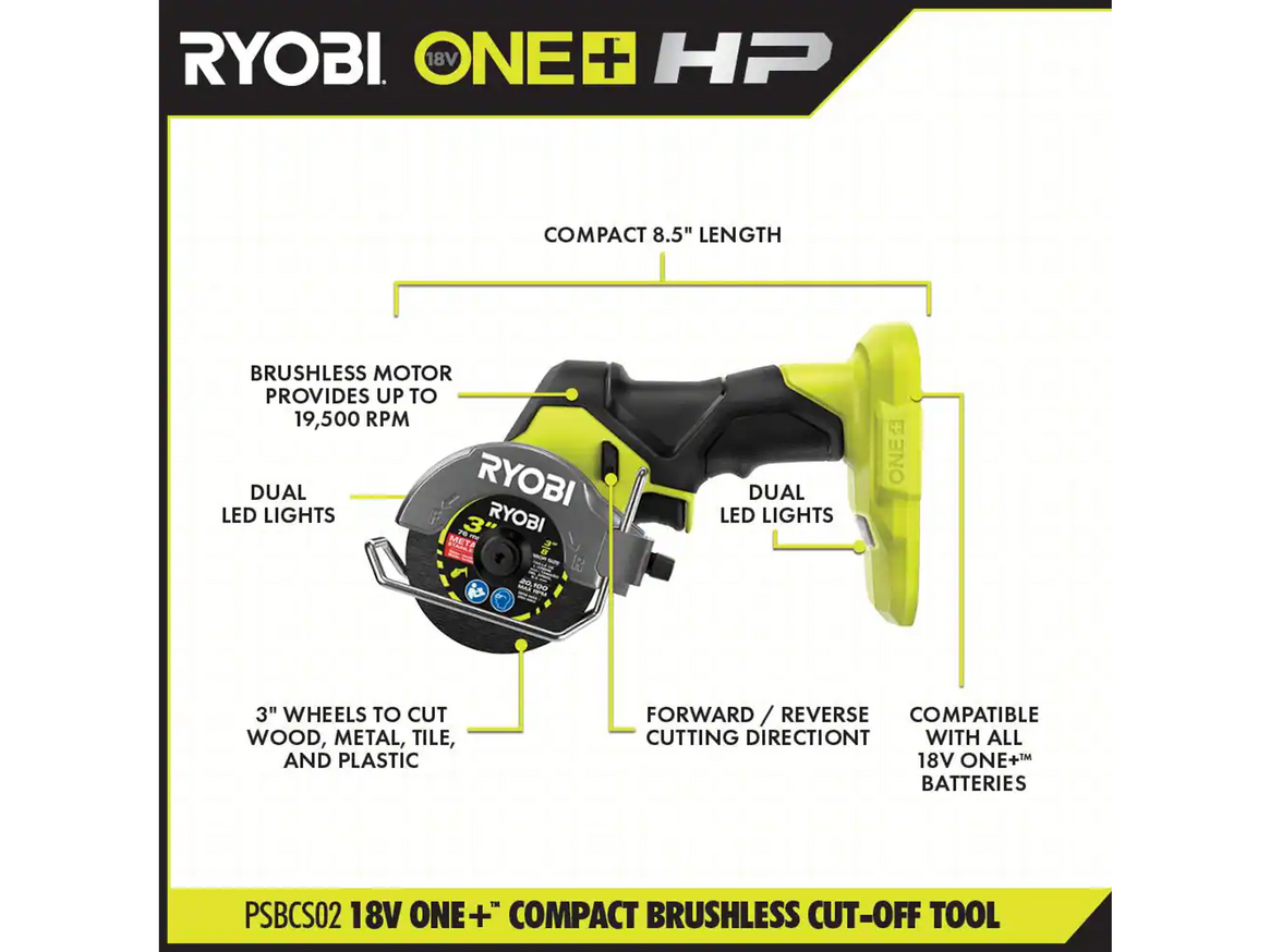 • System Compatibility: Works with all RYOBI 18V ONE+ batteries and chargers