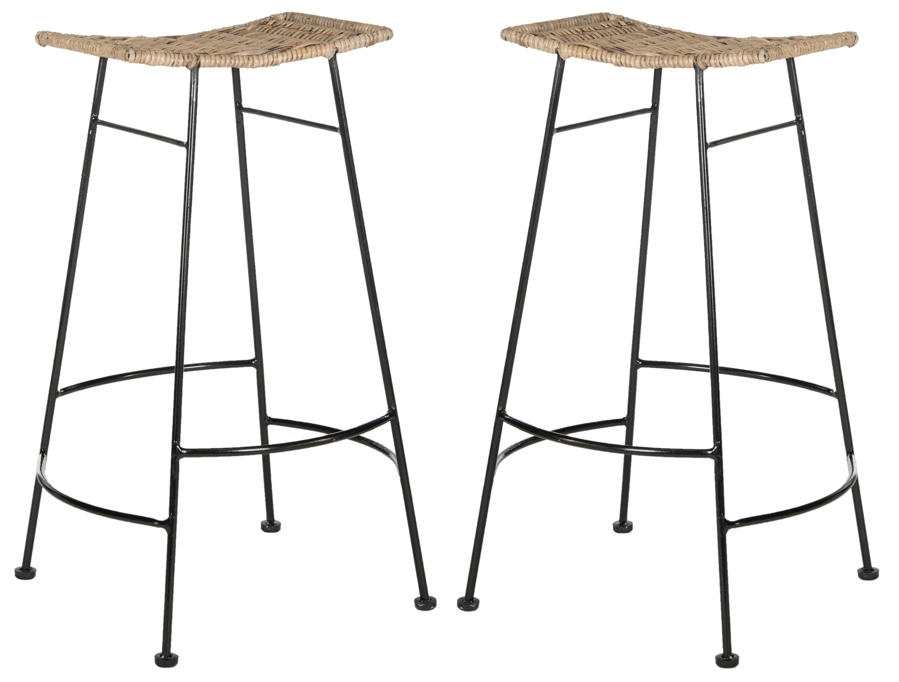 Bring coastal-cool texture to your bar with the Safavieh Atara stools. Handwoven rattan seats rest on slim black metal frames for an airy look, while the 30-in bar height fits standard counters and islands.