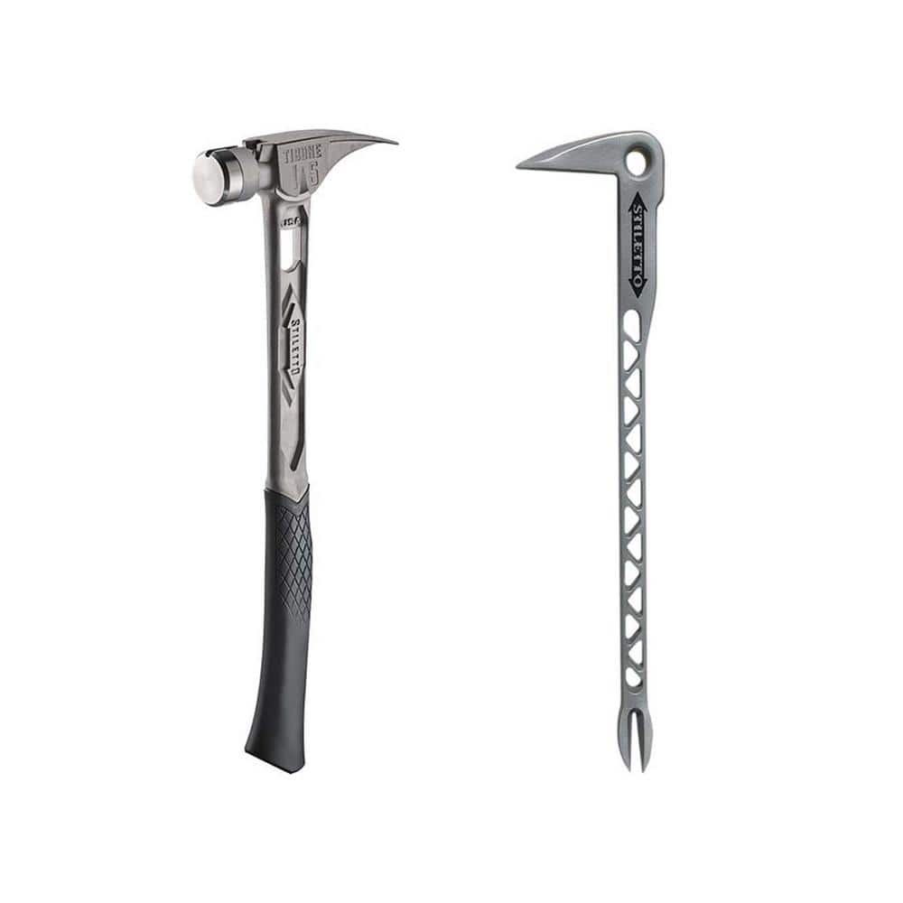 Upgrade your toolbox with the Stiletto 15oz TiBone Hammer paired with a 12-inch Titanium Clawbar Nail Puller. This two-piece set combines innovative design and titanium construction for superior durability and reduced fatigue, making it ideal for demanding framing and construction tasks.