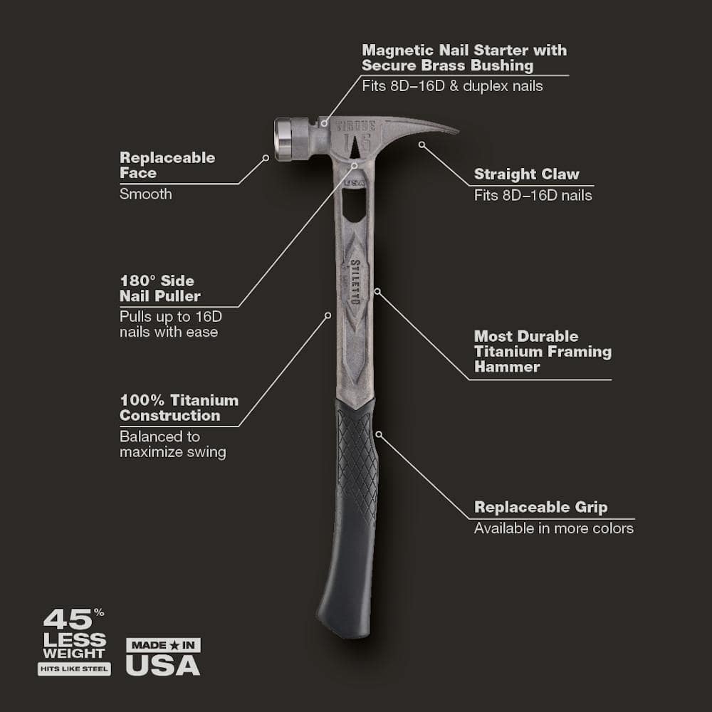 Enhance your toolset with the Stiletto 15oz TiBone Hammer and experience unmatched balance and reduced fatigue—order now and frame your next project with precision and ease.