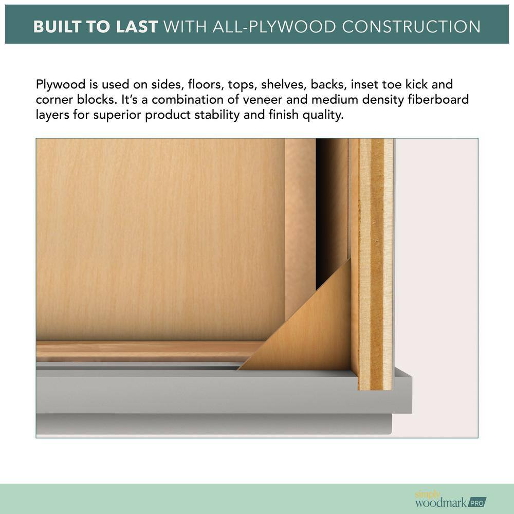 Upgrade your bathroom with the premium Shaker Full Overlay Vanity Sink Base Cabinet in Stone Gray by SIMPLY WOODMARK PRO. Crafted from durable plywood, this cabinet offers stylish functionality and features a full overlay design, ensuring seamless integration into modern or classic interiors. Its premium construction promises lasting quality, backed by over 40 years of expertise and a limited lifetime warranty.