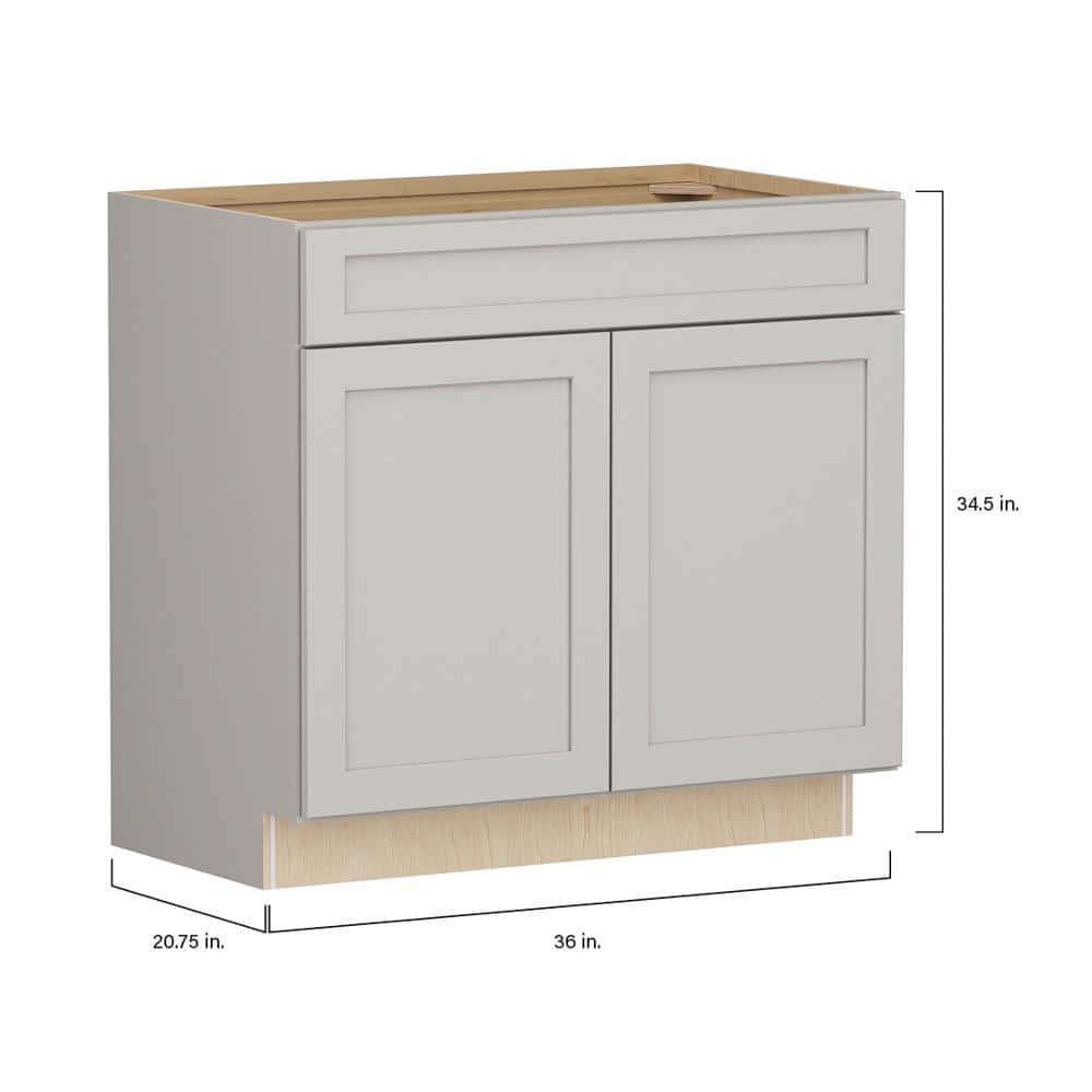 Shaker Full Overlay 36 in. W x 20.75 in. D x 34.5 in. H Plywood Assembled Vanity Sink Base Bath Cabinet in Stone Gray
