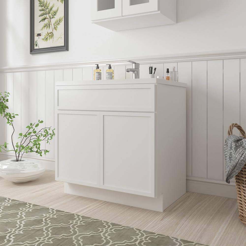 This stylish bath vanity cabinet from Vanity Art effortlessly blends functionality and elegance. Featuring two doors, it offers generous storage for all your bathroom essentials. Its compact design and pristine white finish make it a versatile enhancement to any bathroom decor. Additionally, its robust construction guarantees long-lasting durability.