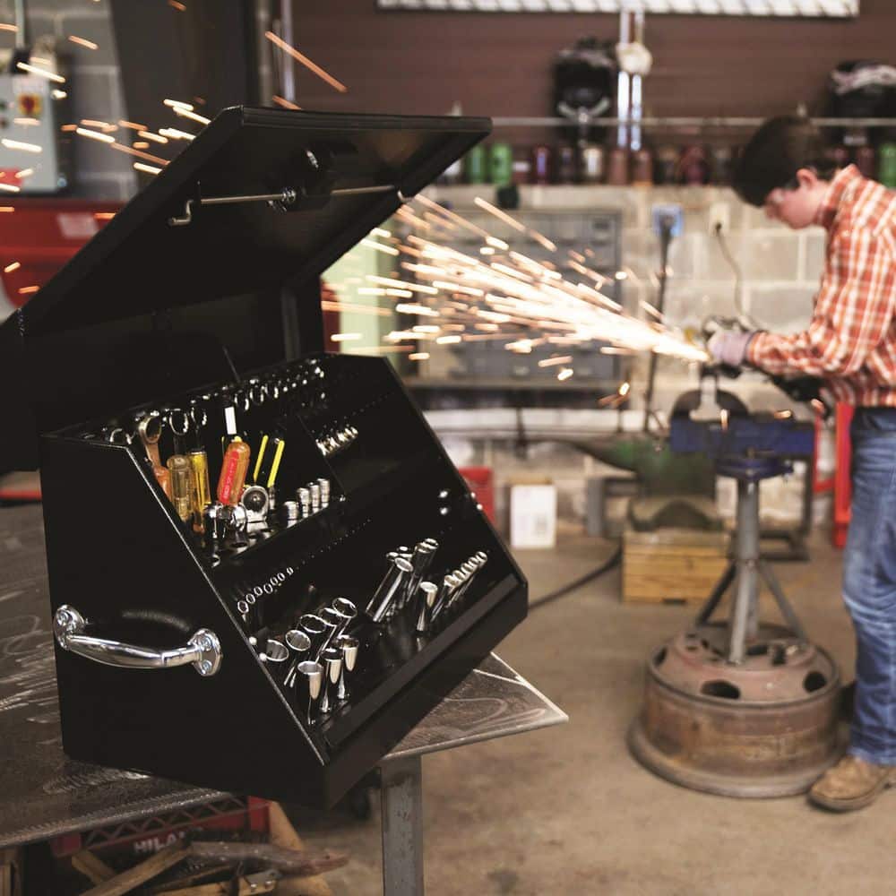 Montezuma 23 in. W x 14 in. D Portable Triangle Top Tool Chest for Sockets, Wrenches and Screwdrivers in Black Powder Coat