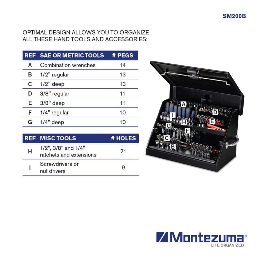 A: Yes, it has designated spaces for both metric and SAE tools, allowing you to keep your tools organized and accessible.