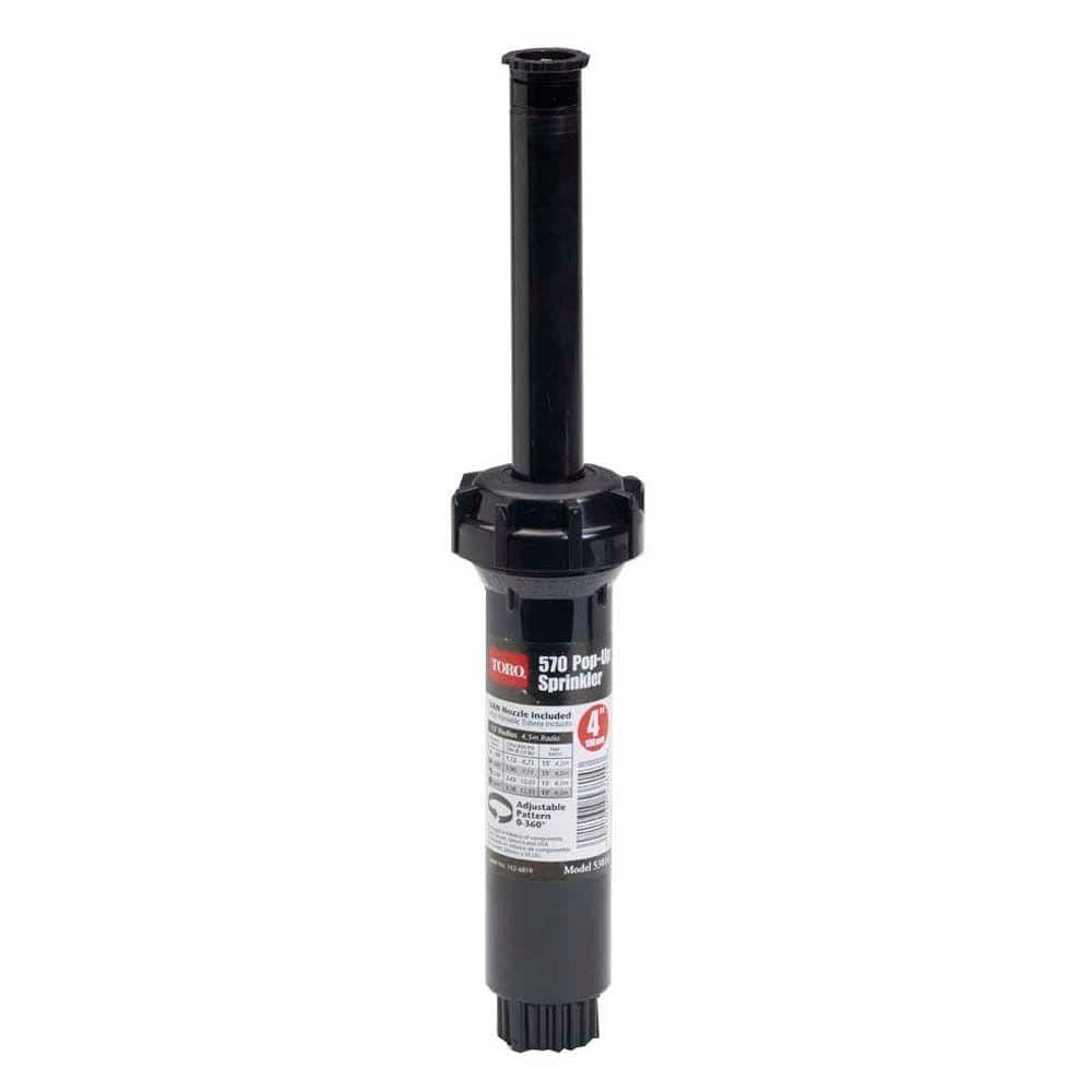 Toro’s 570Z Pro Series pop-up sprinkler delivers uniform coverage for small to medium lawns. The 4 in. pop-up with a pre-installed 15 ft. Variable Arc Nozzle adjusts from 0–360° and features a stainless-steel retraction spring and zero-flush seal to reduce water waste.