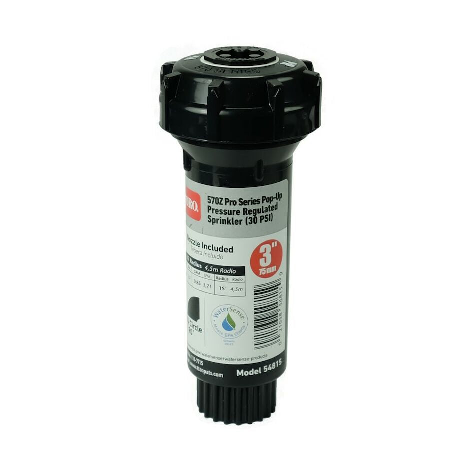 The Toro 570 Series 3-inch pop-up spray head delivers a precise quarter-circle pattern with a pressure-regulated 30 PSI nozzle for efficient watering. Built with a heavy-duty retraction spring and zero-flush design to minimize misting and conserve water, it’s ideal for residential landscape zones.