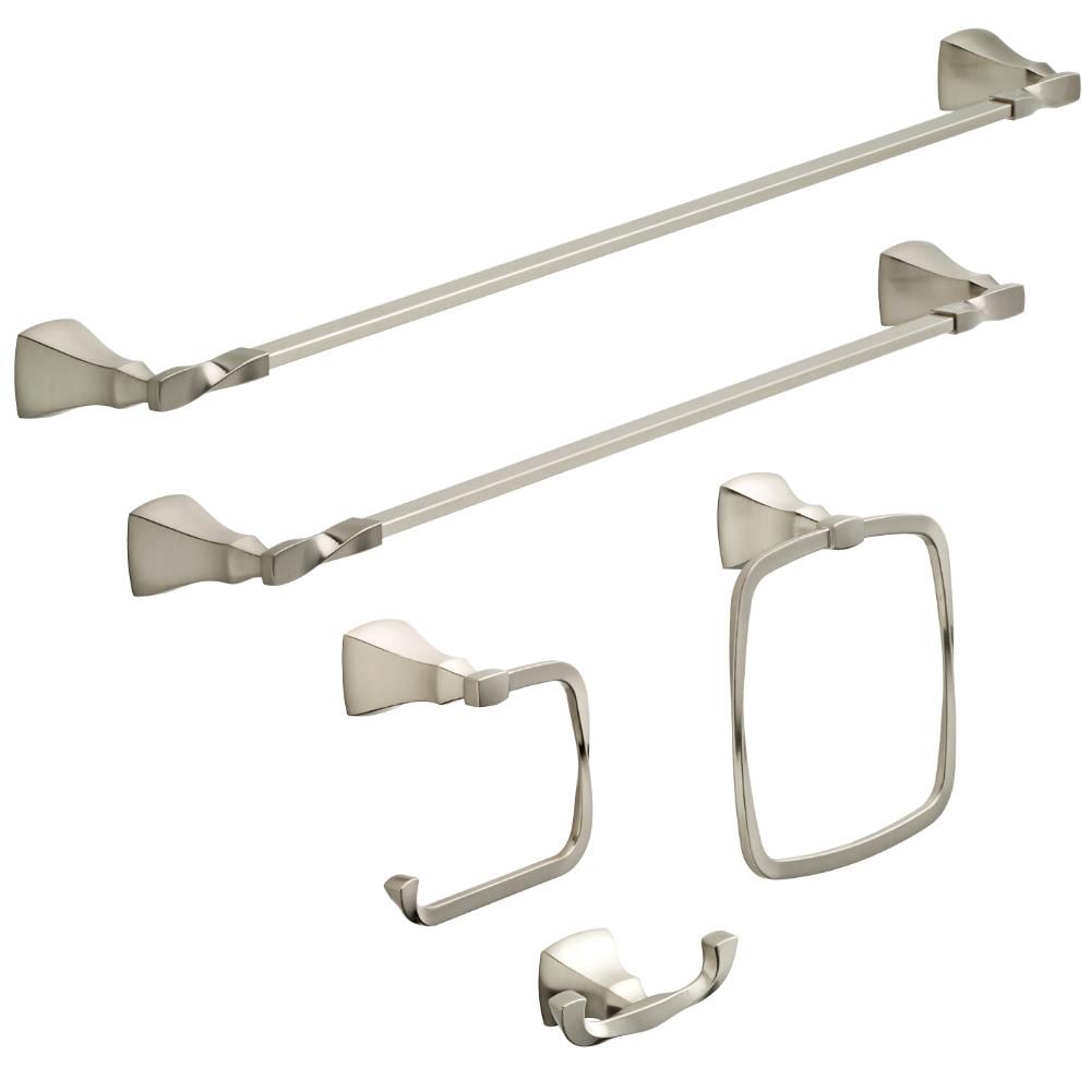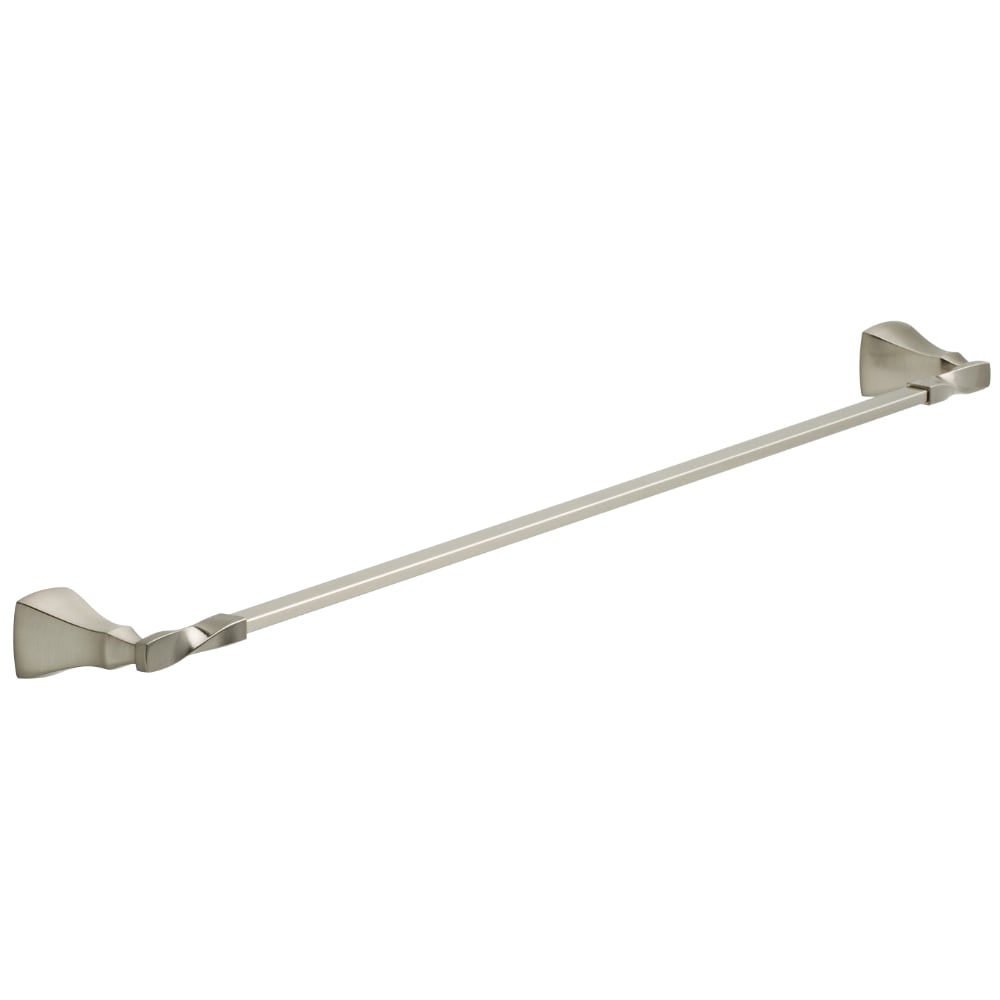 Elevate bathroom organization with the Delta Sawyer 24-in wall-mounted single towel bar. Built from durable zinc with a satin nickel finish and SpotShield technology, it resists water spots and fingerprints while securely holding bath or hand towels.