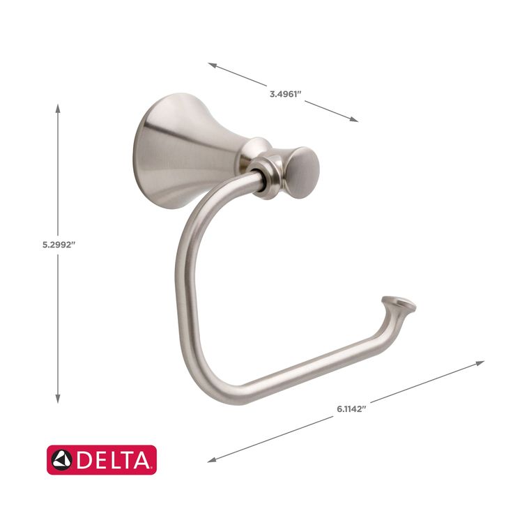 Hold one roll of tissue and features euro style design for easy roll replacement Beautifully coordinates with the Delta Valdosta faucet Zinc die cast construction provides reliability and durability Coordinates beautifully with the Delta Valdosta bath collection (sold separately) For a look that's easily paired anywhere, the warm, muted shine of Brushed Nickel can't be beat, with a subtle touch, Brushed Nickel brings harmony to your bath and pairs with any dcor Wall mounted design for bathroom convenience and organization SpotShield technology resists water spots, fingerprints and stains so the bath hardware stays cleaner longer Features set screw mounting system for added durability Included mounting template and hardware takes the guesswork out of installation