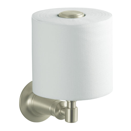 Vertical holder makes changing toilet tissue quick and simple Premium metal construction for durability KOHLER finishes resist corrosion and tarnish Coordinates with Archer Collection Installation template included Includes easy-to-install template