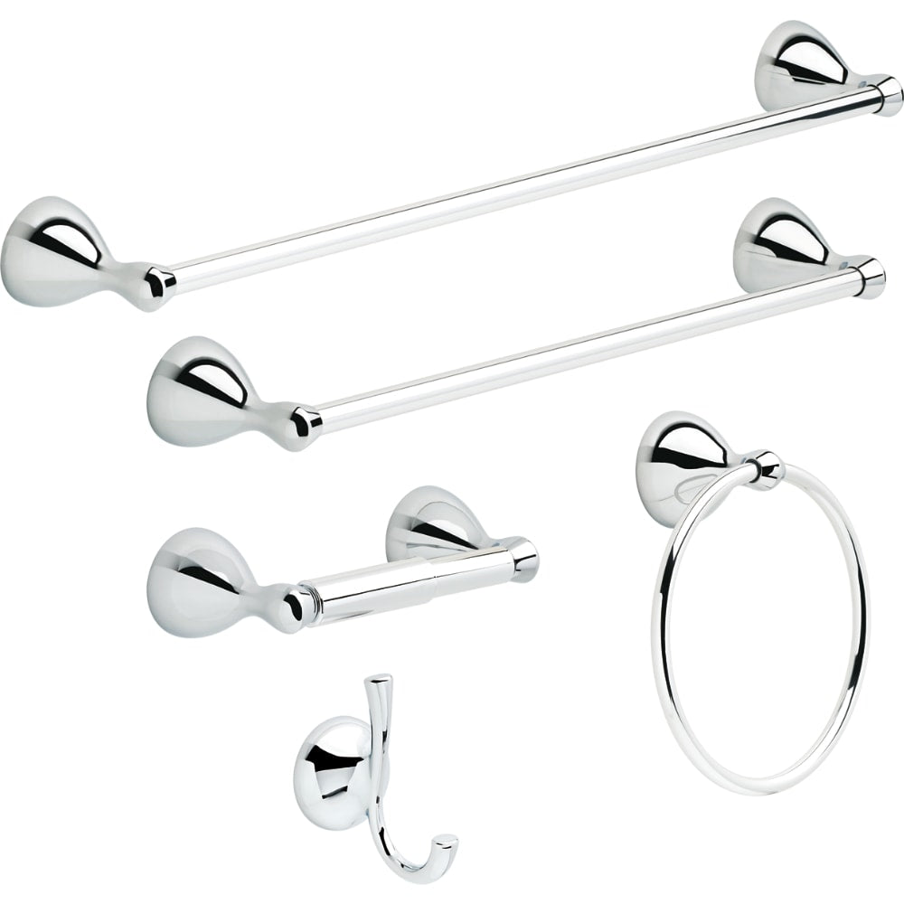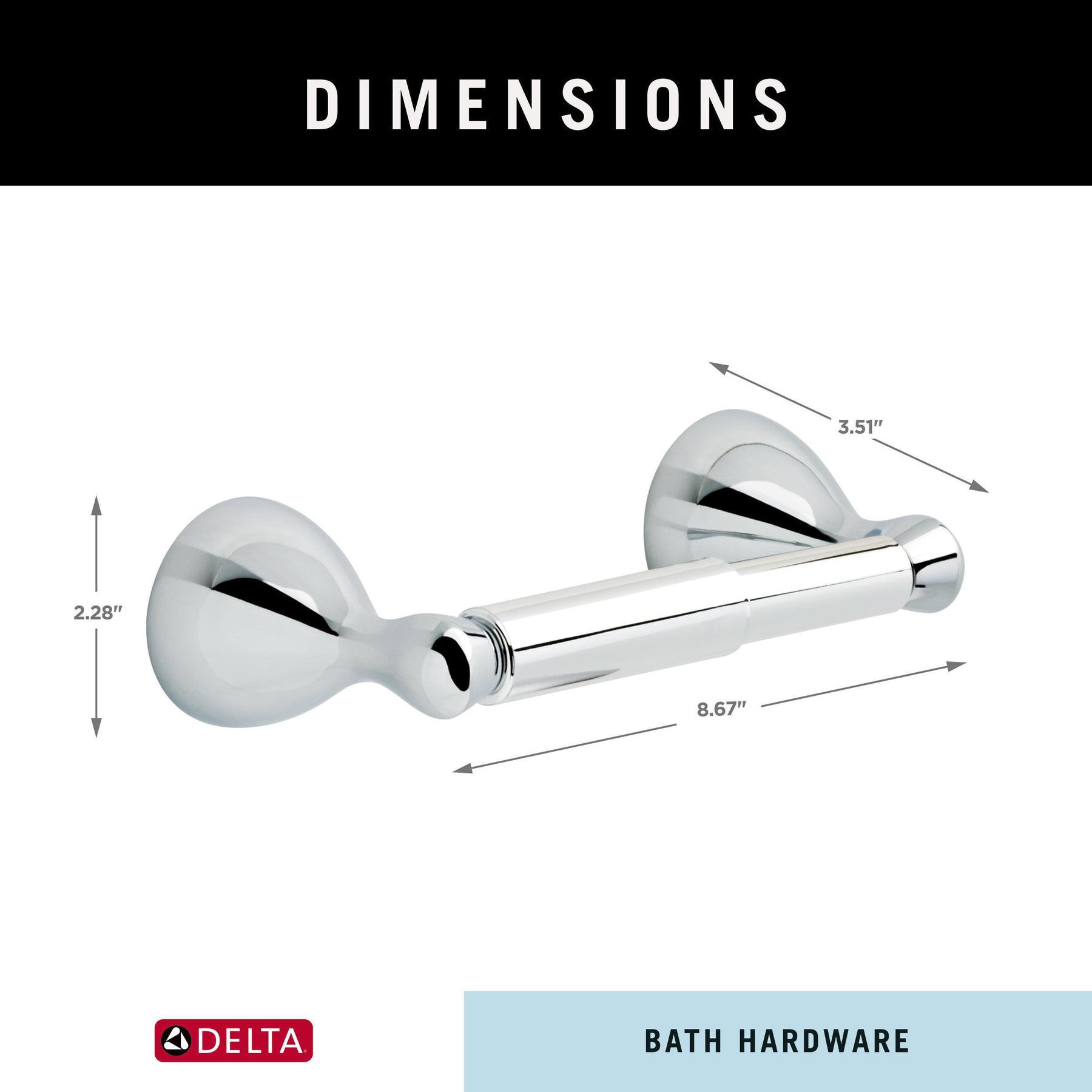 This Delta Foundations wall-mounted toilet paper holder delivers everyday convenience with a polished chrome, high-gloss finish that resists corrosion. Spring-loaded design makes roll changes quick, and durable zinc die-cast construction ensures long-lasting performance.