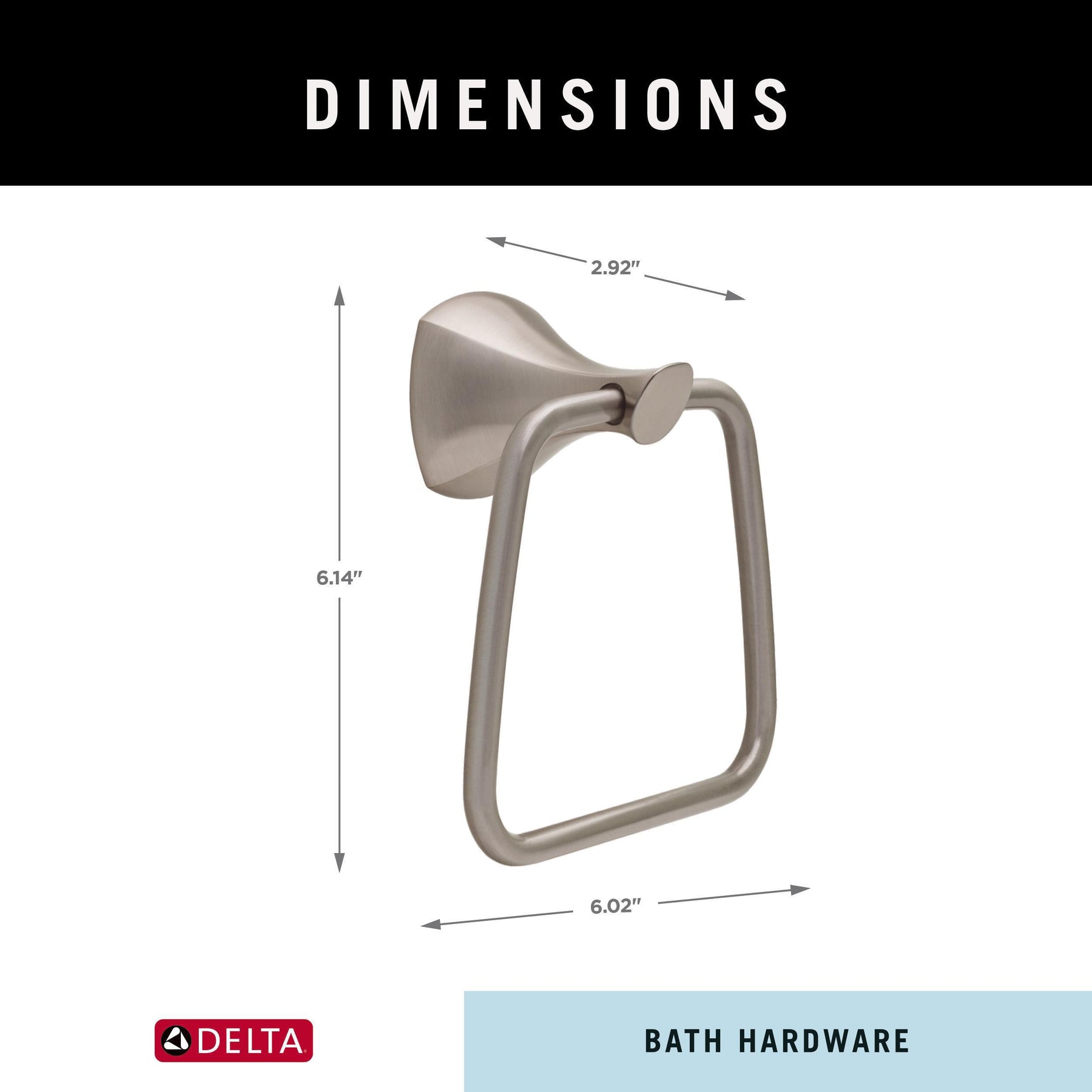 This Delta Sandover towel ring features a SpotShield brushed nickel finish that resists water spots and fingerprints for a cleaner look. Its square, closed-ring design mounts to the wall and keeps hand towels within easy reach, complementing the Sandover bath collection.