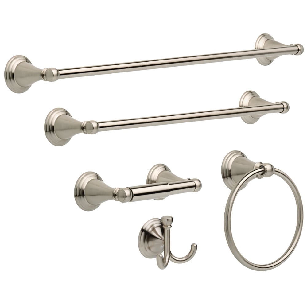 Keep hand towels within easy reach with the Delta Windemere wall-mounted towel ring. Finished in SpotShield brushed nickel to resist water spots and fingerprints, it features a classic, sculpted design and durable zinc construction.