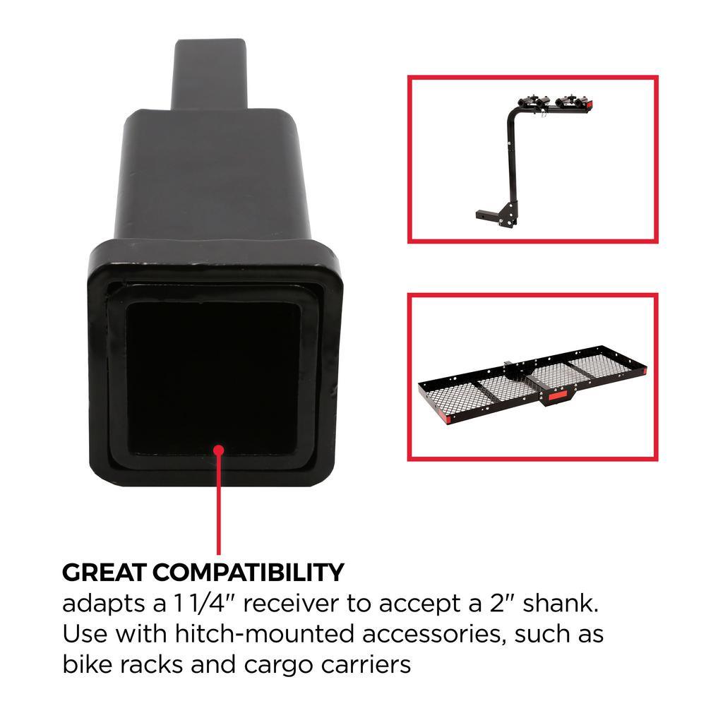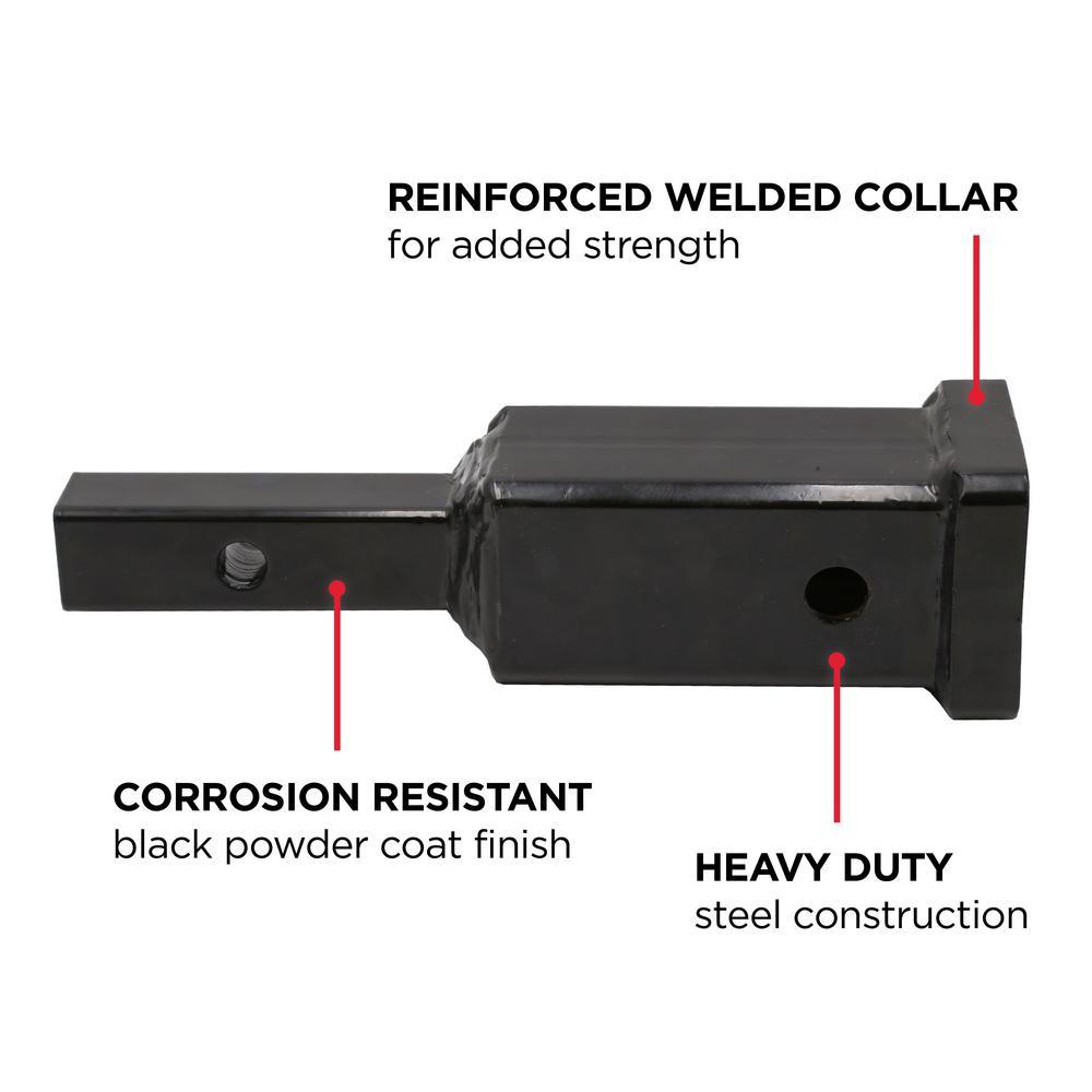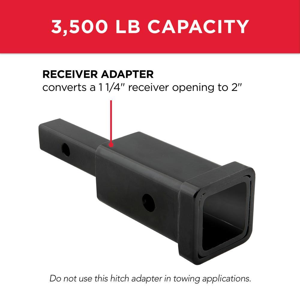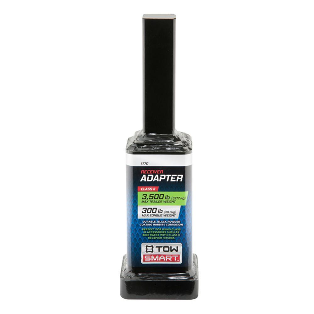 The TowSmart Receiver Adapter is built of a rugged steel construction. It features a durable black powdercoat finish that is corrosion resistant. It is perfect for using Class III Accessories, such as Bike Racks, with Class II Receiver Hitch.