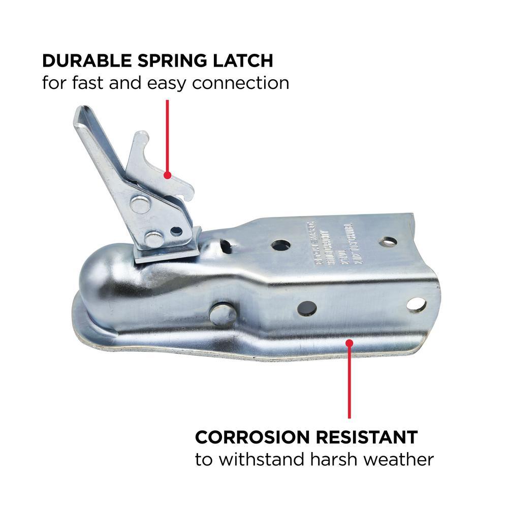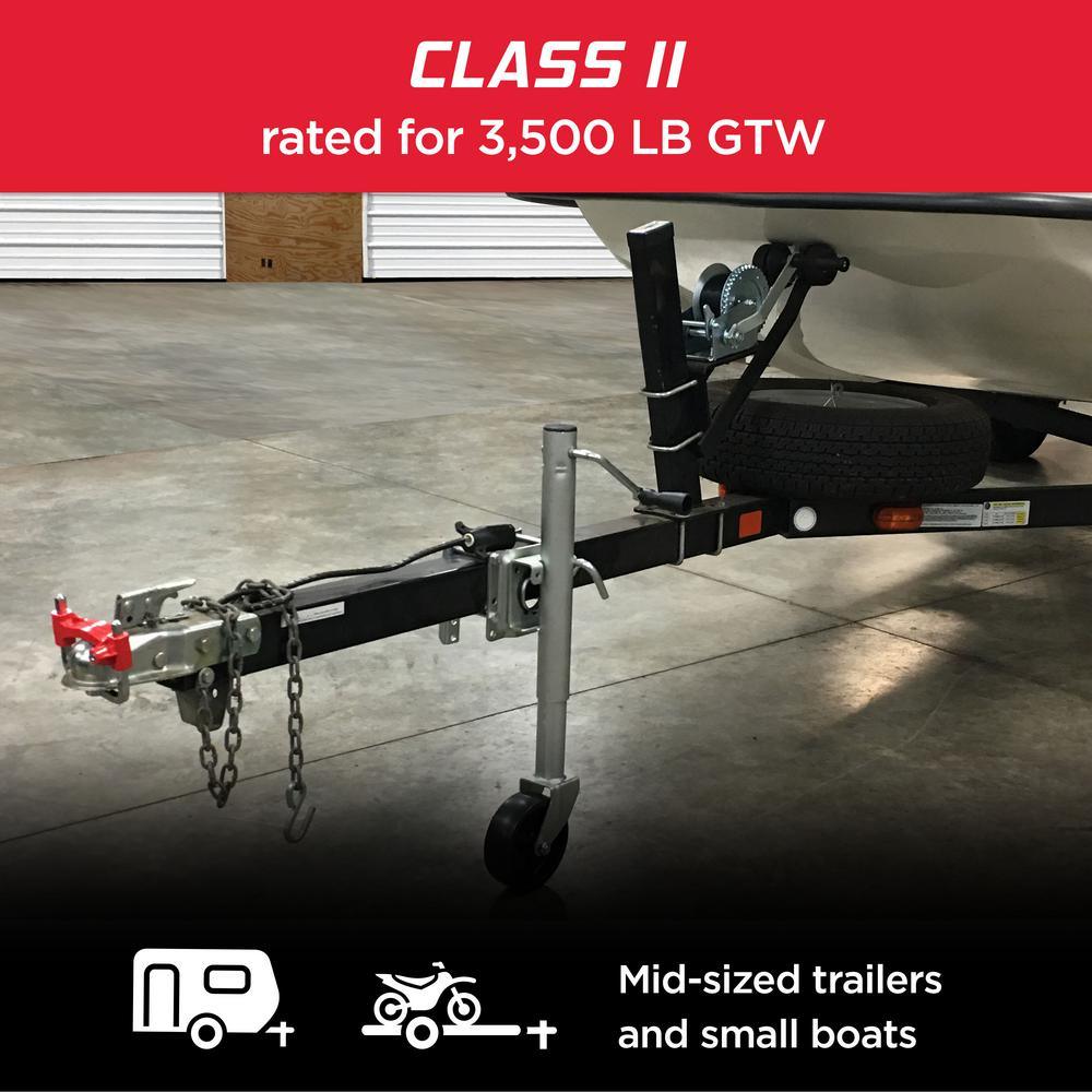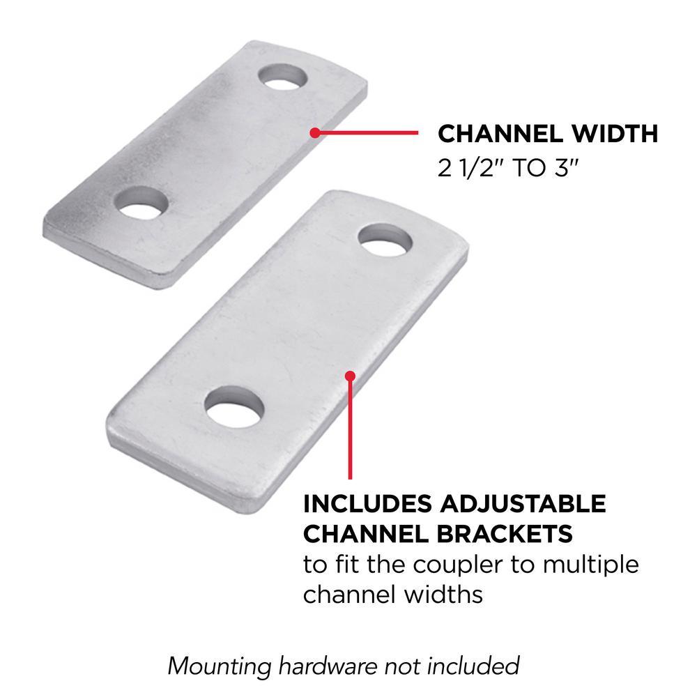 The TowSmart Class II Coupler fits a 2 in. hitch ball and has adjustable collars to fit a 2-1/2 in. or 3 in. channel width. The coupler is zinc-plated to resist corrosion and rust. 3,500 lb. MAX Trailer Weight.