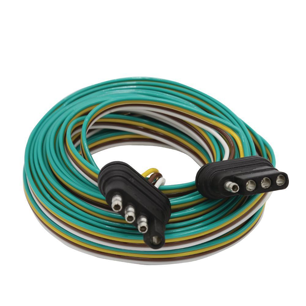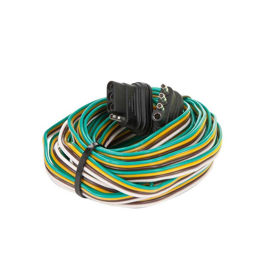 The TowSmart Electrical Connector is the quickest and easiest way to make electrical connections between your vehicle and trailer when towing. The one-piece construction features 2 - 4-way flat connectors (trailer and vehicle end) with 24 ft. of 18-Gauge bonded wire that provides stop, turn and tail lights. Features an ergonomic, durable plastic construction that is corrosion resistant to withstand harsh weather conditions. For the safest towing, ensure all functions are properly equipped.