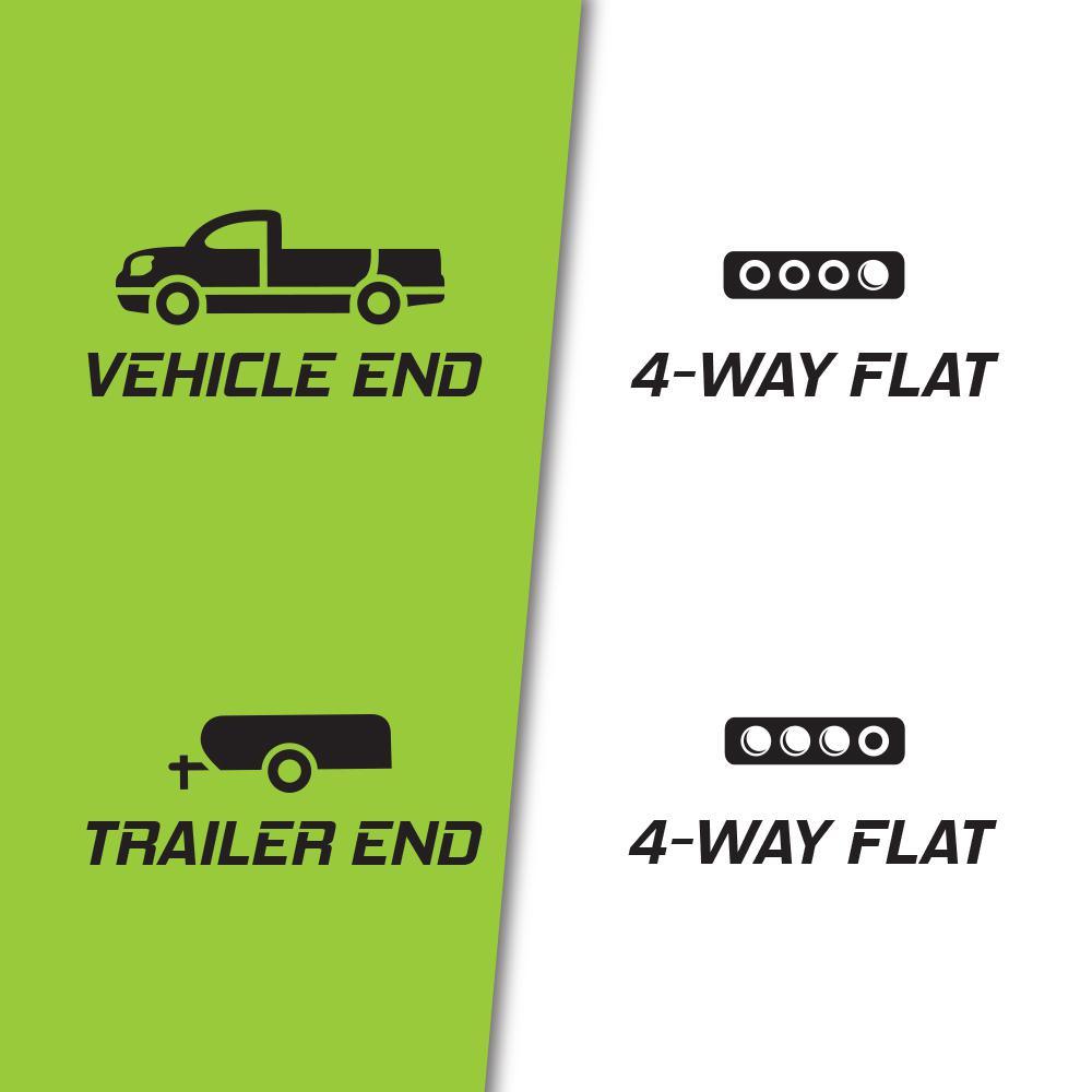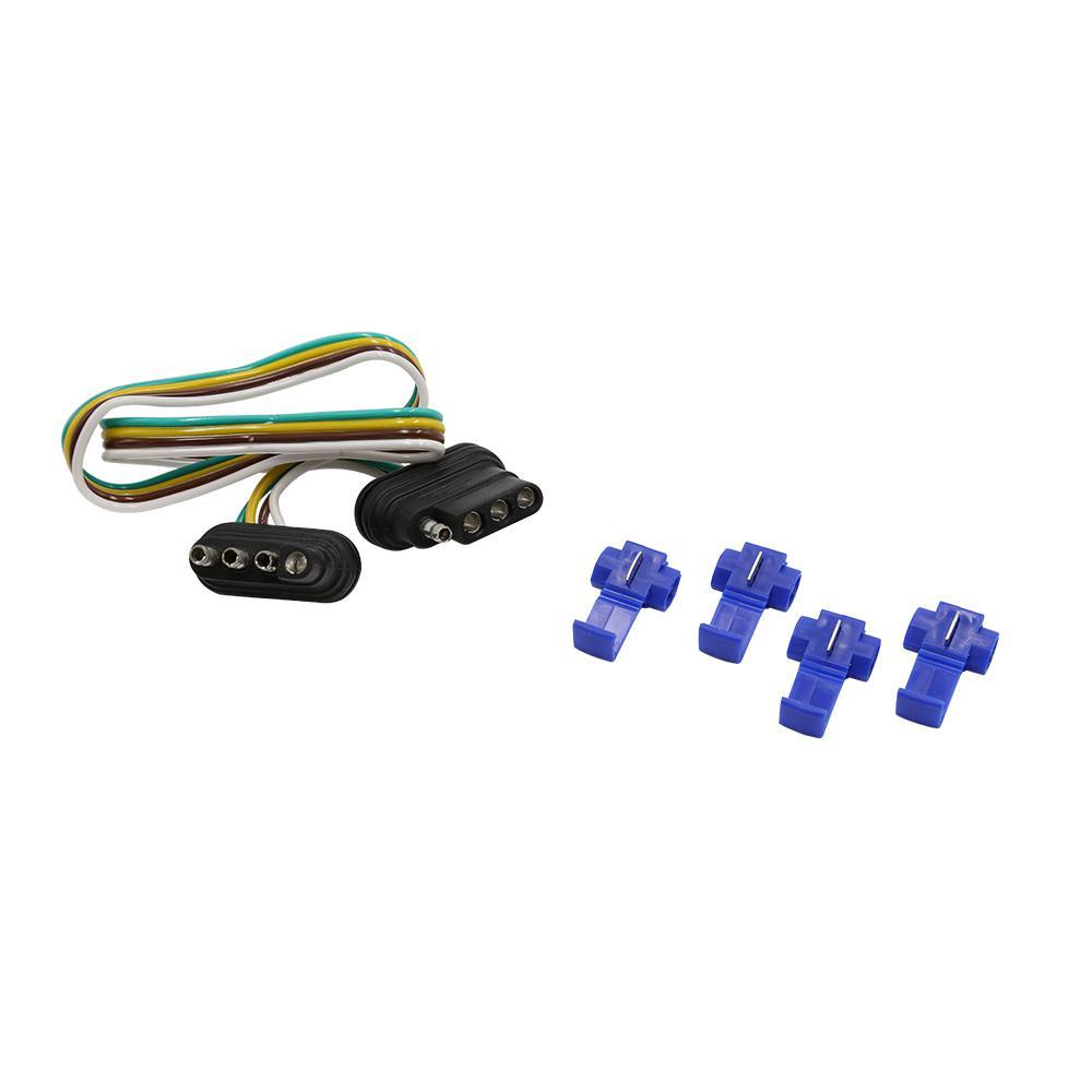The TowSmart Electrical Connector is the quickest and easiest way to make electrical connections between your vehicle and trailer when towing. The one-piece construction features 2 - 4-way flat connectors (trailer and vehicle end) with 18 in. of 18-Gauge bonded wire that provides stop, turn and tail lights. Features an ergonomic, durable plastic construction that is corrosion resistant to withstand harsh weather conditions. For the safest towing, ensure all functions are properly equipped.
