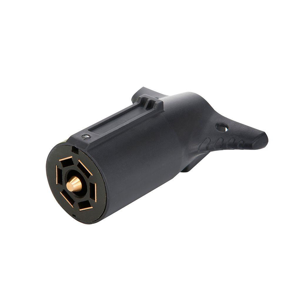 The TowSmart Electrical Connector is the quickest and easiest way to make electrical connections when hauling a trailer that has a different wiring configuration than the vehicle. The single housing design plugs in your vehicles electrical socket and splices into trailer wiring to provide a superior connection. The 7-way blade connector is commonly used on RV trailers and connects tail lights, brake lights, turn signals and reverse lights. It provides an ergonomic, durable plastic construction that is corrosion resistant to withstand harsh weather conditions. For the safest towing, ensure all functions are properly equipped.