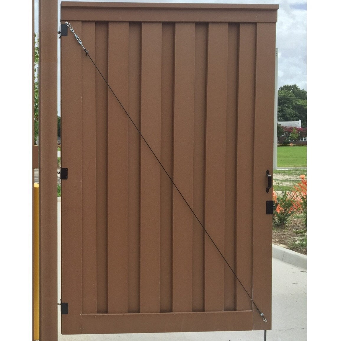 A: Yes, the composite materials used in this gate are highly durable and weather-resistant, ensuring it stands up to various climatic conditions with minimal maintenance.