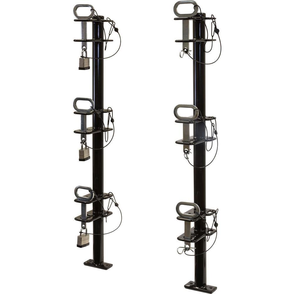 - Includes 2 racks, 6 securing pins and 3 pad locks