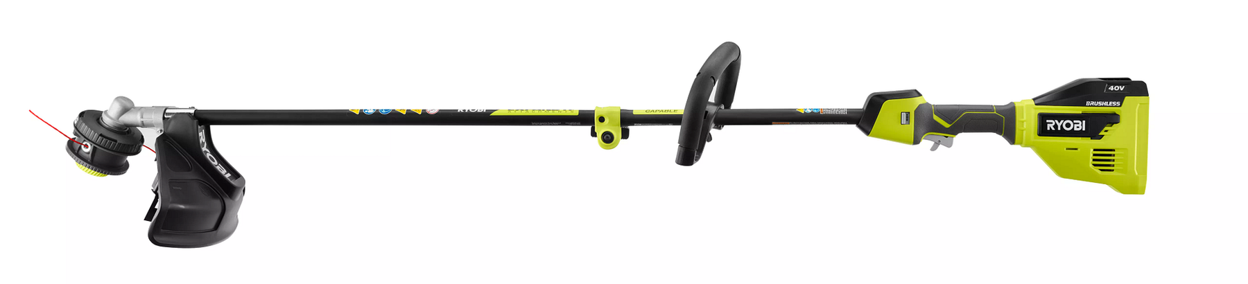 Upgrade your yard care with the RYOBI 40V brushless trimmer and enjoy powerful, attachment-ready performance—add to cart today.