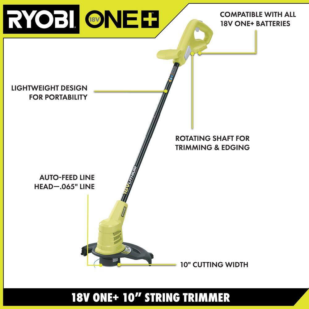 RYOBI ONE+ 18V Cordless String Trimmer, 10 in. Cut