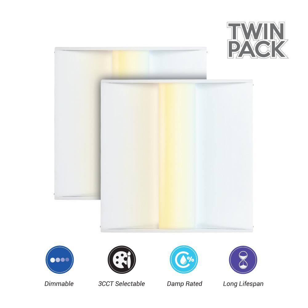 Euri Lighting 2 ft. x 2 ft. 128-Watt Equivalent Integrated LED White Troffer 3CCT Selectable (2-Pack)
