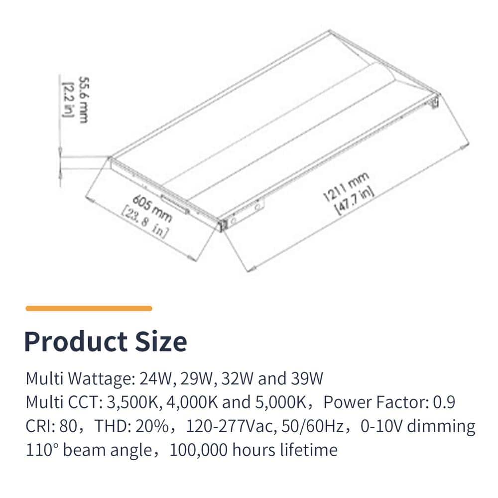 • Dimming Capability: Features 0-10-volt dimming for enhanced control over brightness levels to suit any environment.
