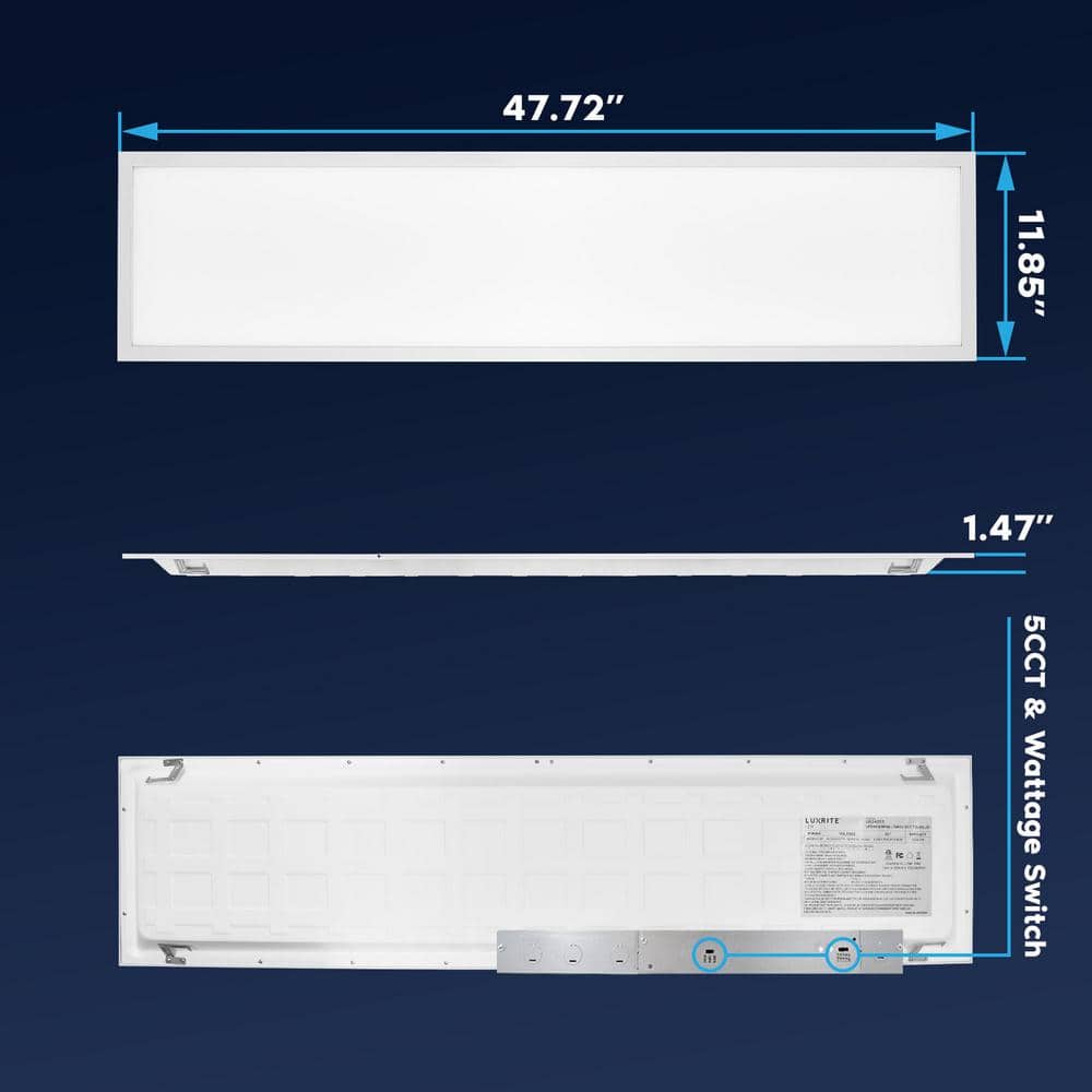 Illuminate your space with the LUXRITE 1x4 ft Integrated LED Flat Panel Light featuring selectable color temperatures and wattages. This commercial-grade panel provides up to 5,000 lumens and can easily be adjusted to suit a variety of environments. Ideal for offices, businesses, and homes, this ETL listed fixture is both versatile and energy-efficient.