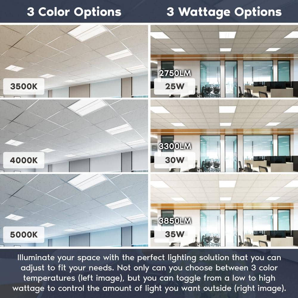LUXRITE 2 ft. x 2 ft. 2750/3300/3850 Lumens Integrated LED Panel-Light 3 Color Options 3500K/4000K/5000K Dimmable (2-Pack)