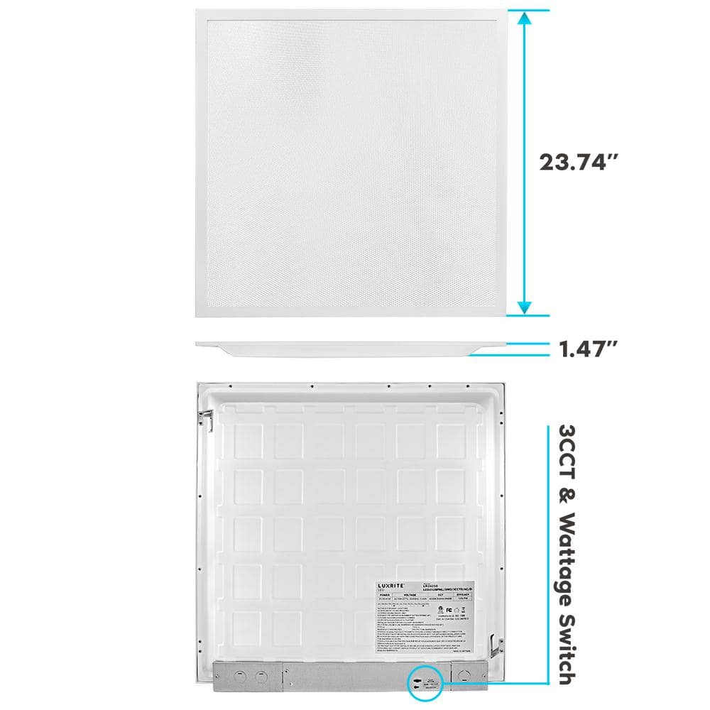 Illuminate your space efficiently with the LUXRITE 2x2 Integrated LED Flat Panel Light. This versatile lighting solution offers 3 selectable color temperatures and adjustable wattage, making it perfect for both commercial and residential settings. With a slim profile design, it's ideal for low-profile grid installations or can be surface or suspension mounted.
