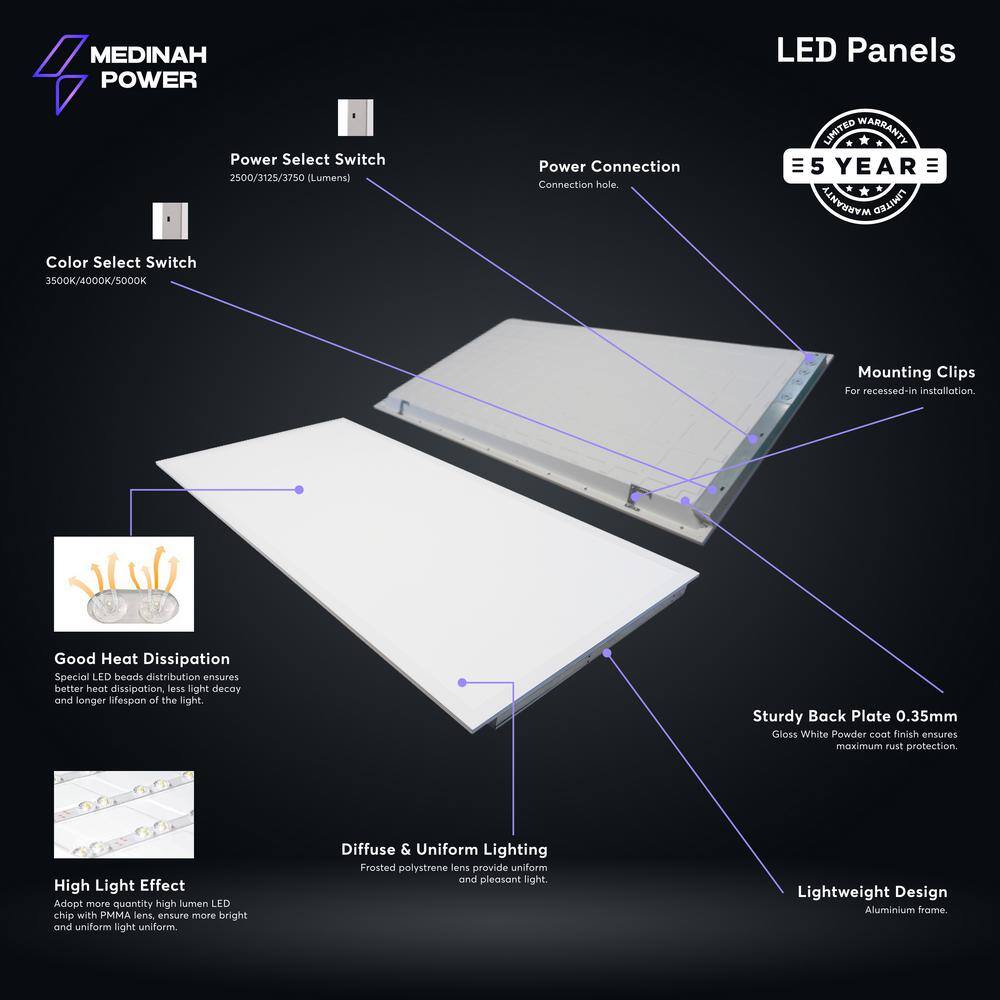Upgrade your commercial space with the MEDINAH POWER LED panels and experience unmatched lighting versatility and efficiency today!