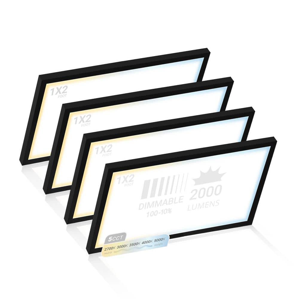 NuWatt 1 ft. x 2 ft. Black Surface Mount Integrated LED Panel Internal Driver 2000LM, 5CCT 27K-50K, Triac Dimmable, 22W, 4 Pack