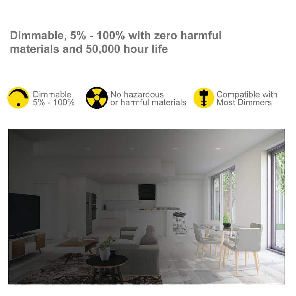 • TRIAC Dimmable: Enjoy smooth, flicker-free dimming from 10% to 100% for customizable brightness.