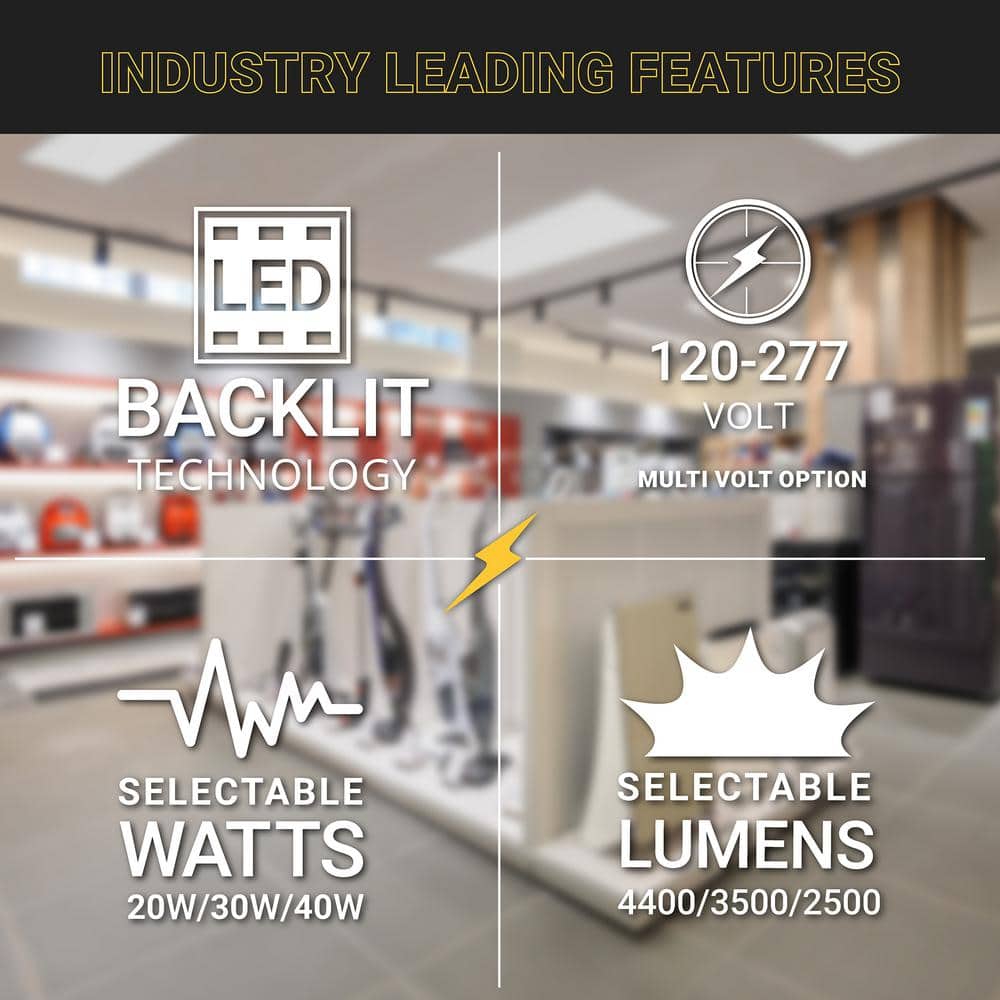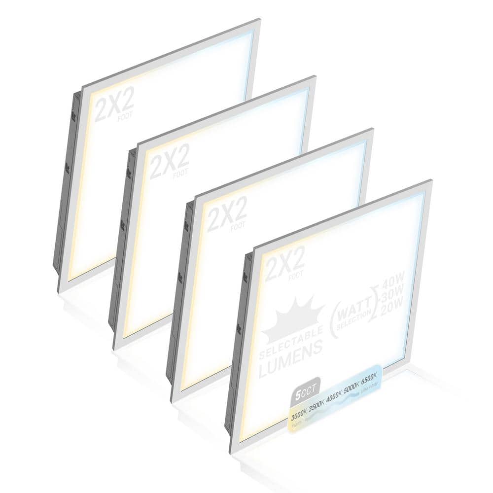 NuWatt 2 ft. x 2 ft. Drop Ceiling Backlit Integrated LED Panel 5CCT 30K-65K Color & Lumens Selectable Dimmable 120-277V (4-PK)