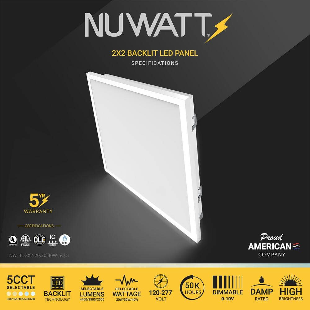 NuWatt 2x2 ft. Backlit Drop Ceiling LED Panel