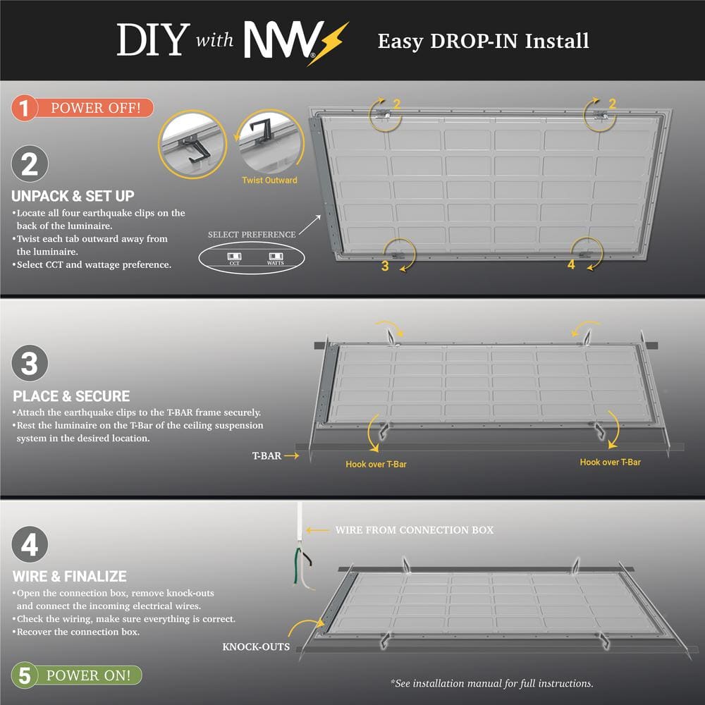 Elevate your lighting experience with NuWatt's versatile and efficient LED ceiling panels—order now to brighten your space with ease and precision.