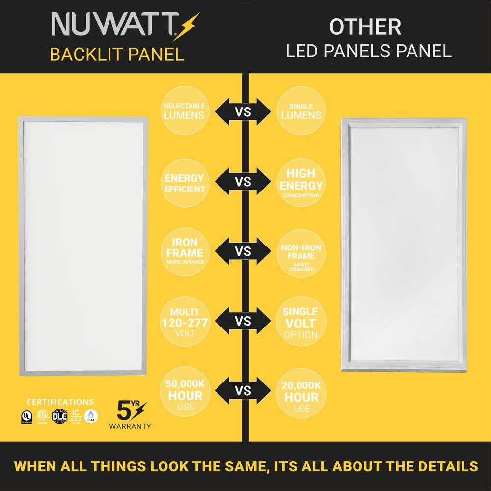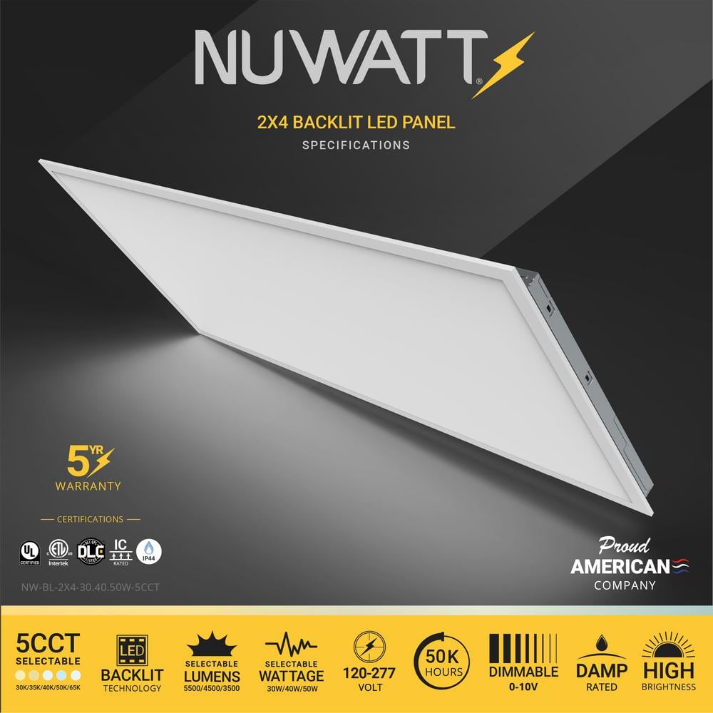 NuWatt 2 ft. x 4 ft. Drop Ceiling Backlit Integrated LED Panel 5CCT 30K-65K Color & Lumens Selectable Dimmable 120-277V (4-PK)