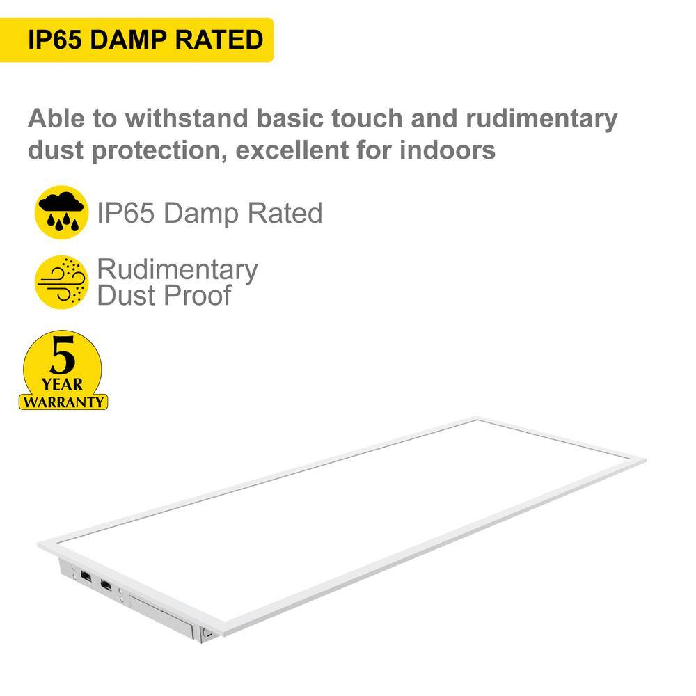 Illuminate your spaces with the NuWatt 2 ft. x 4 ft. Integrated Backlit LED Panels. These ceiling panels provide 5500 lumens of adjustable brightness and 5000K cool daylight color, making them perfect for both residential and commercial settings. Featuring a sleek aluminum design and easy installation, these LED panels offer efficiency and longevity.