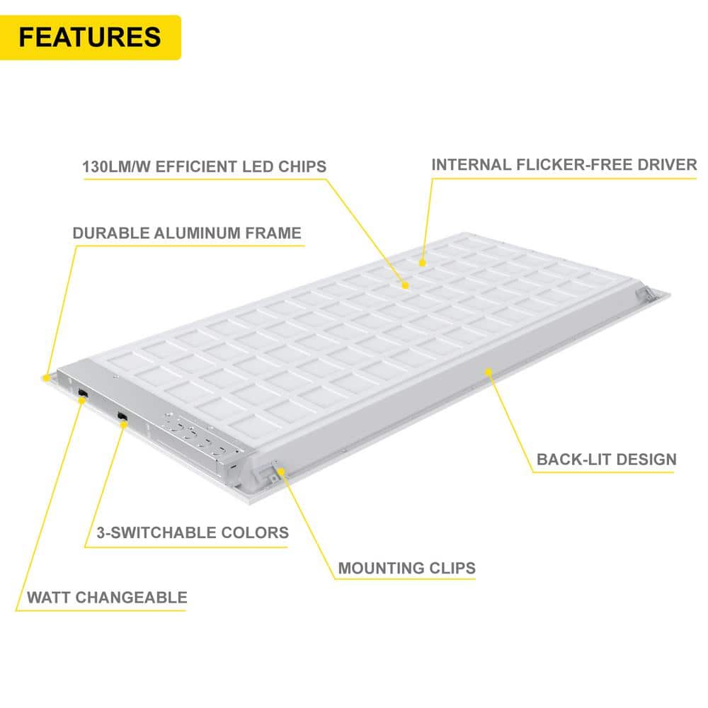 NuWatt 2 ft. x 4 ft. Integrated Backlit LED Panel Internal Driver Drop in Ceiling 5500 Lumen Dimmable 5000K 120-277V (4-Pack)