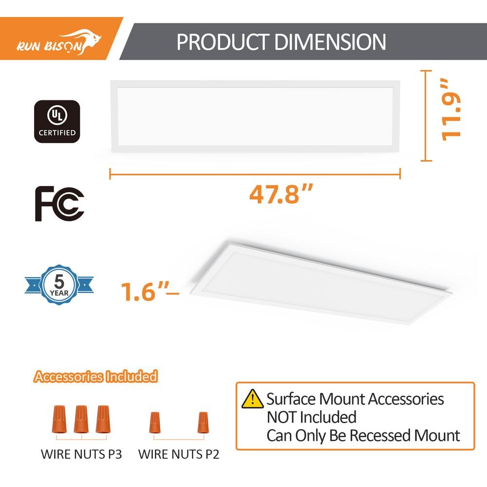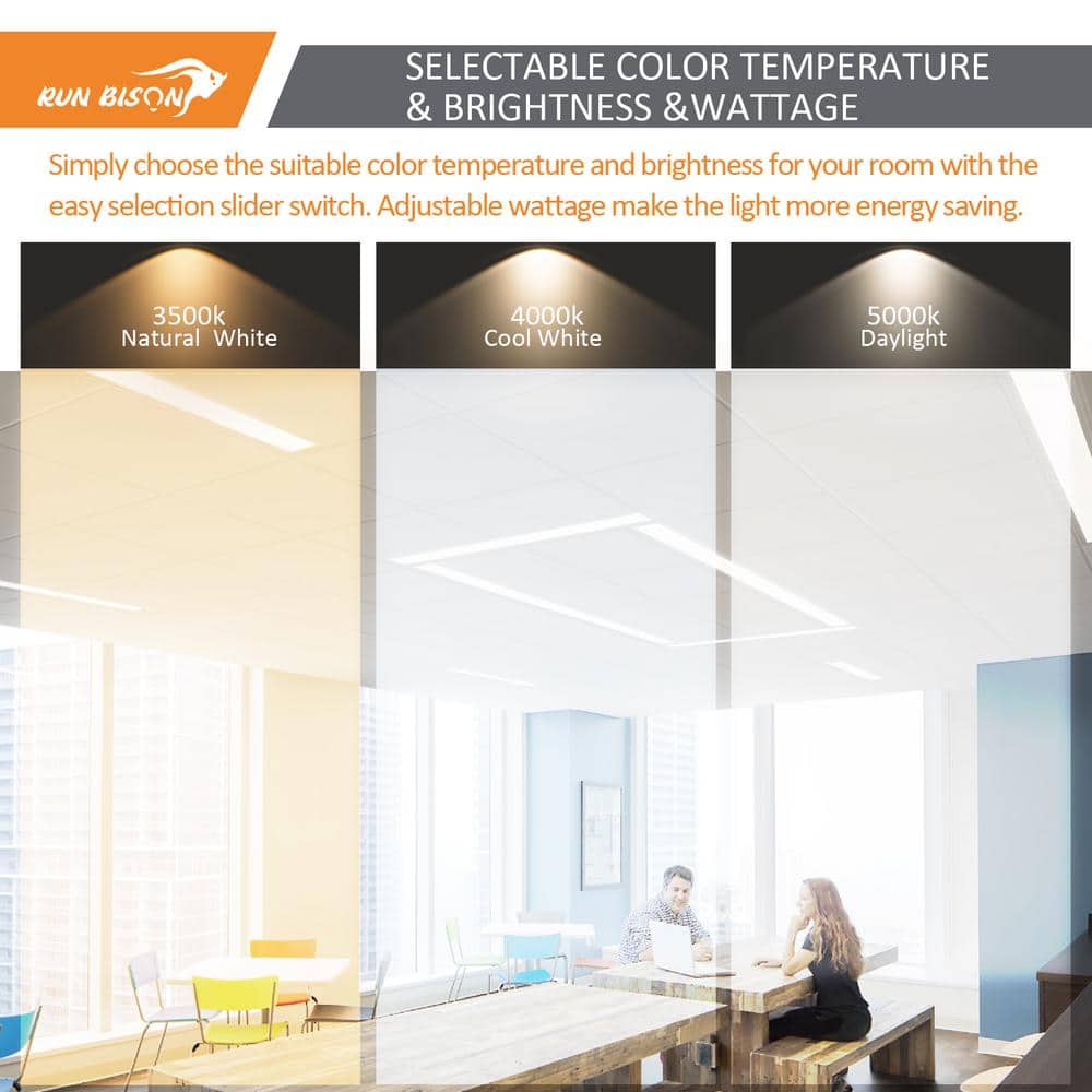 RUN BISON 1 ft. x 4 ft. Dimmable White CCT and Wattage Selectable Integrated LED Back-Lit Flat Panel Light